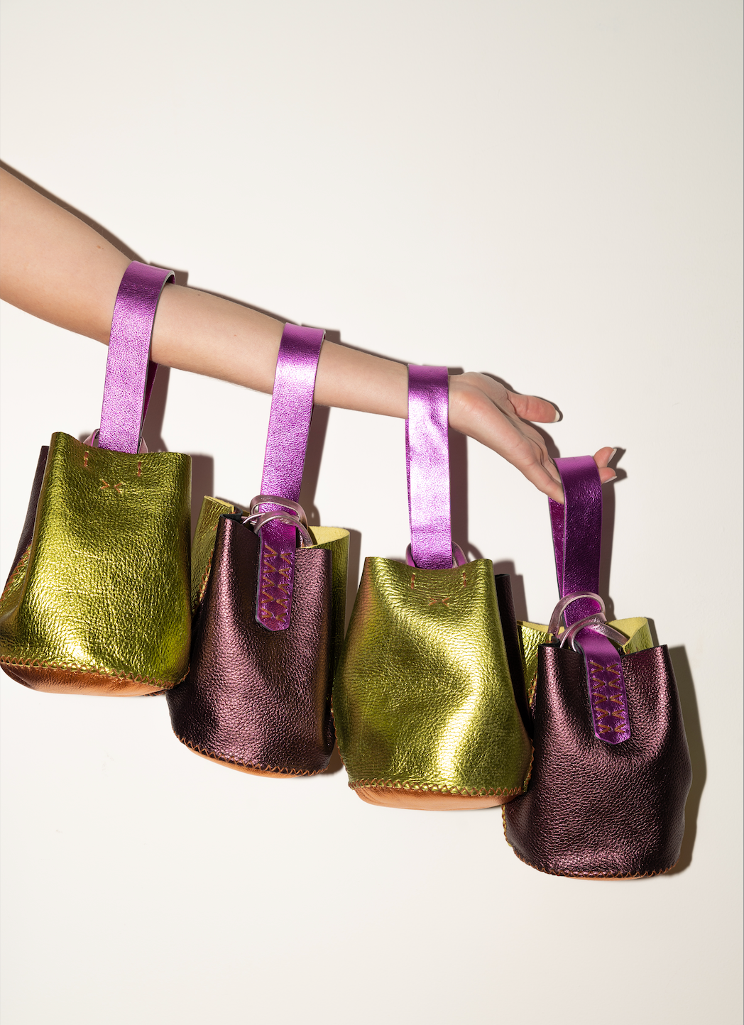 100% upcycled leather bags hand-stitched by Artisan Refugee Women in Brazil