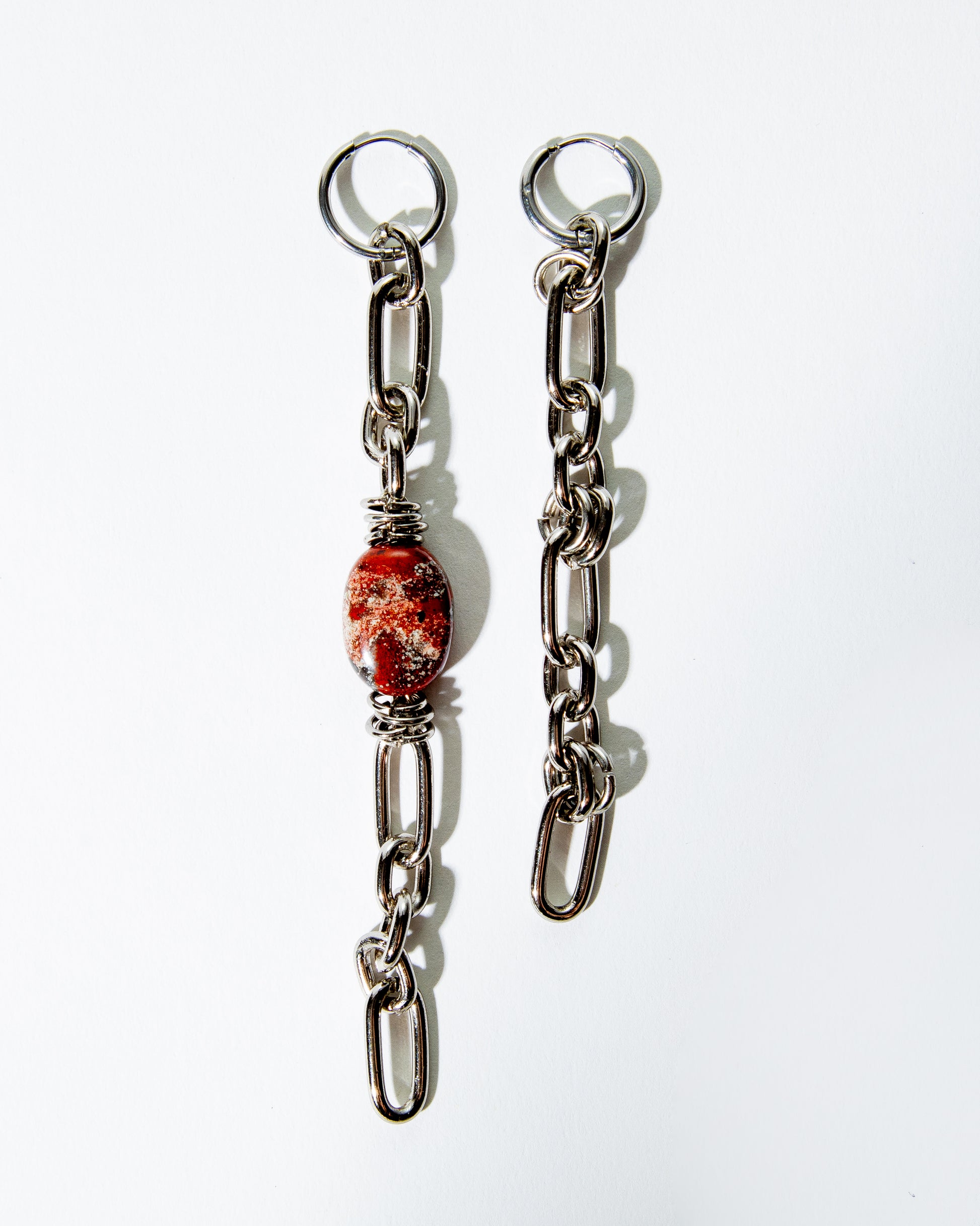 stainless steel ring with brass chain silver bath, onyx stone and breach jasper.